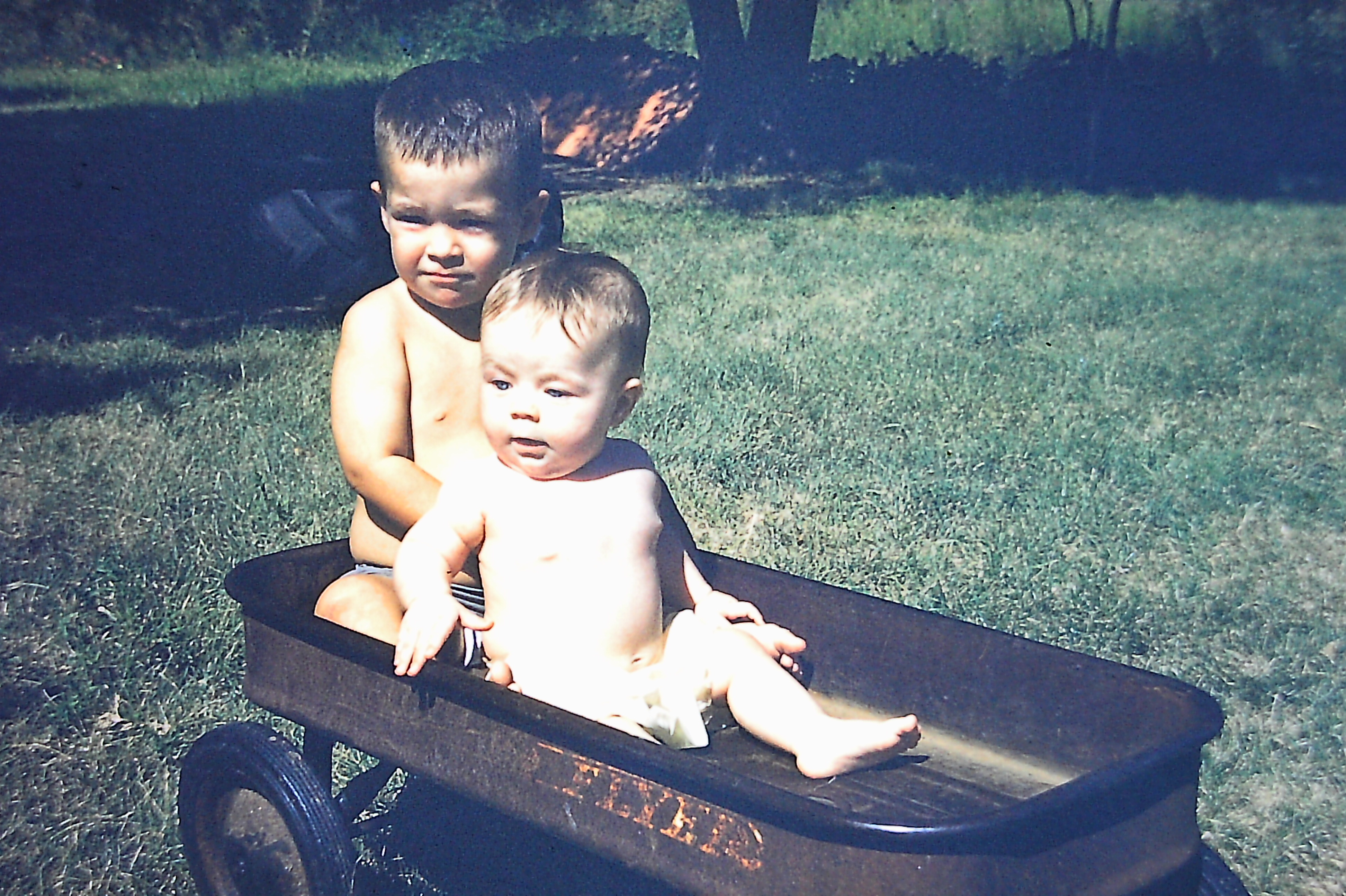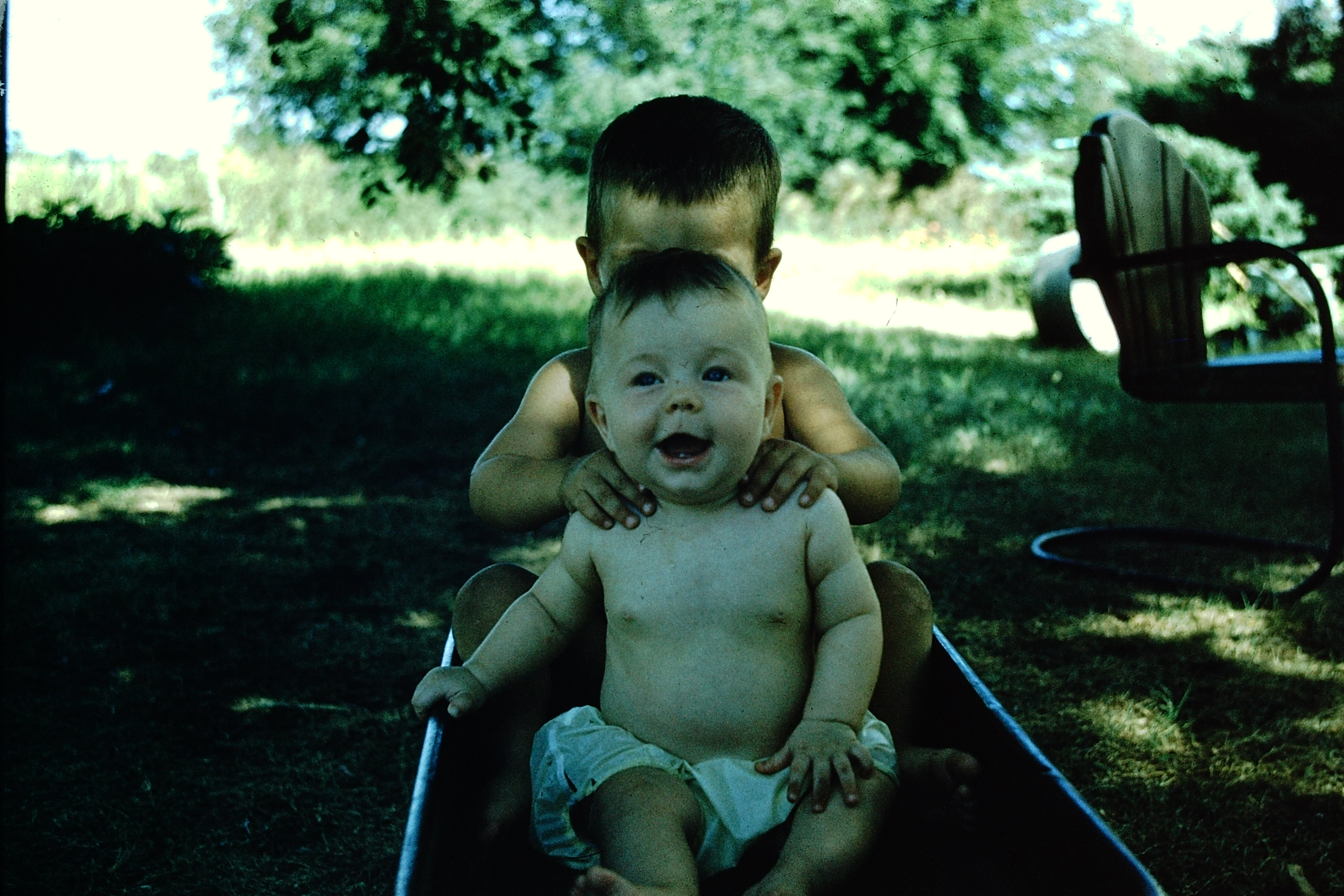 The Cady Farm, New York. Clyde’s daughters Grace & Isabelle. Taken when the family first came back from Pakistan after evacuating during an Indian-Pakistan conflict, and before Clyde came home. The dog was a puppy of Mary’s brother James, who always kept hound dogs.Cowboy Phil