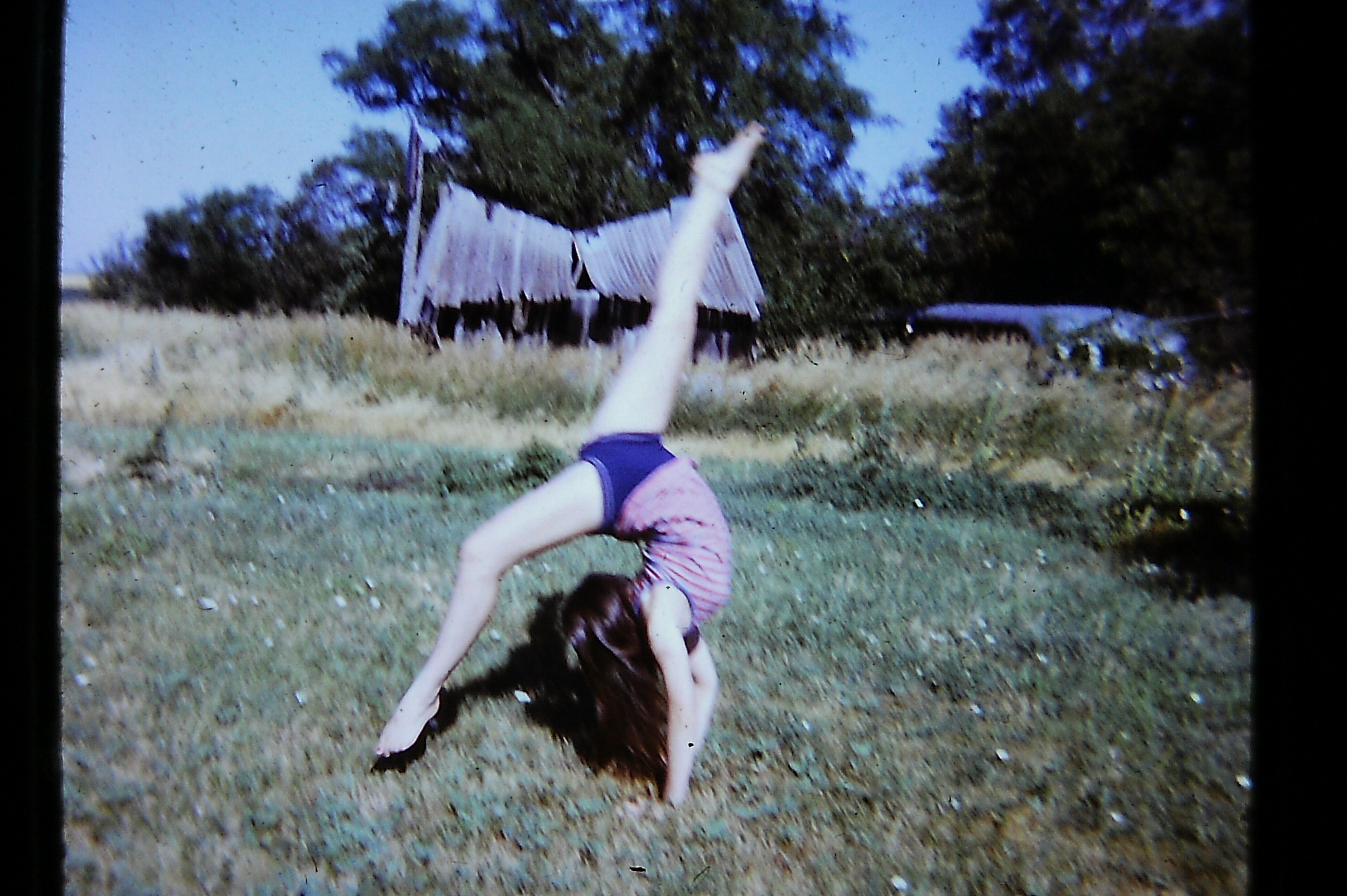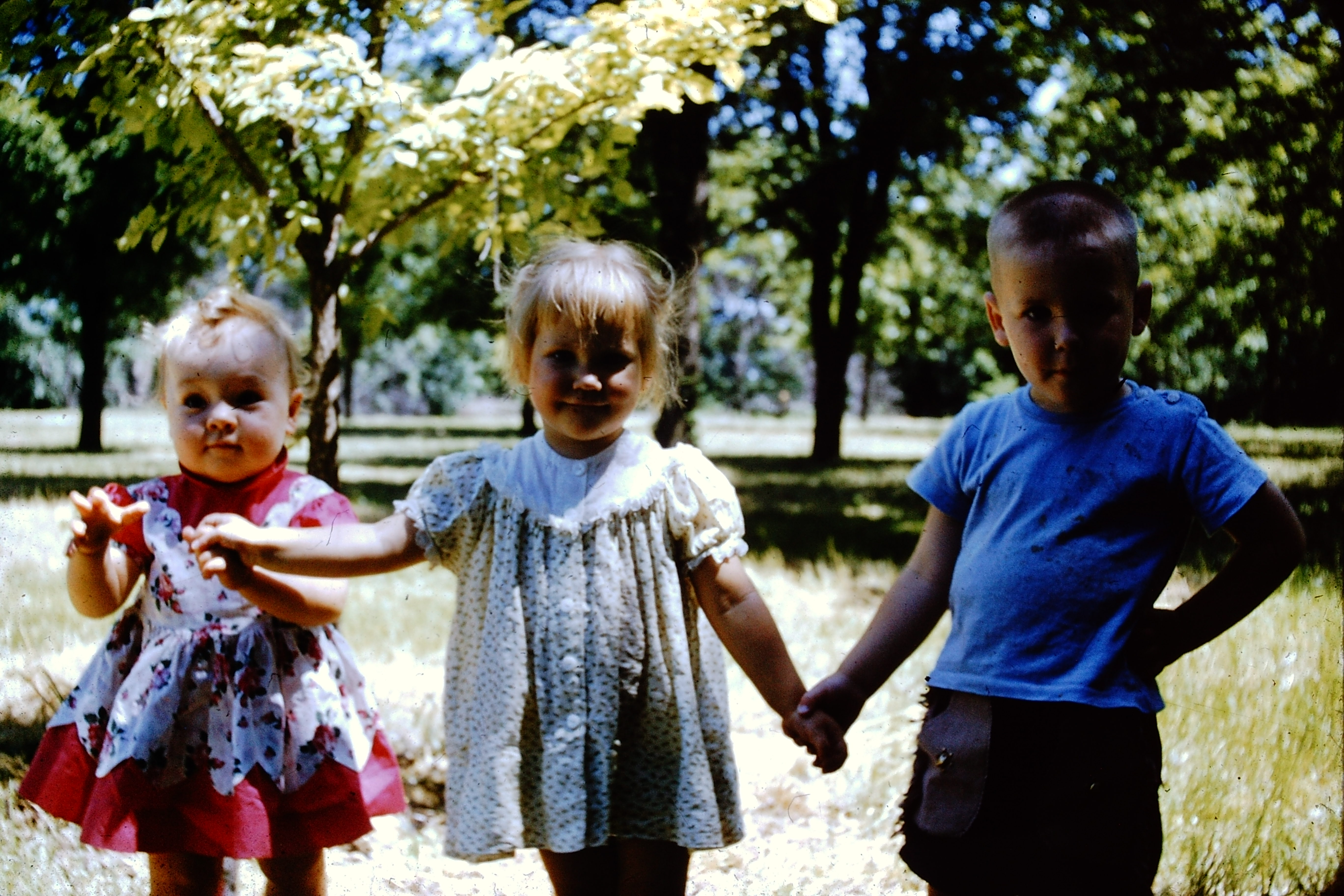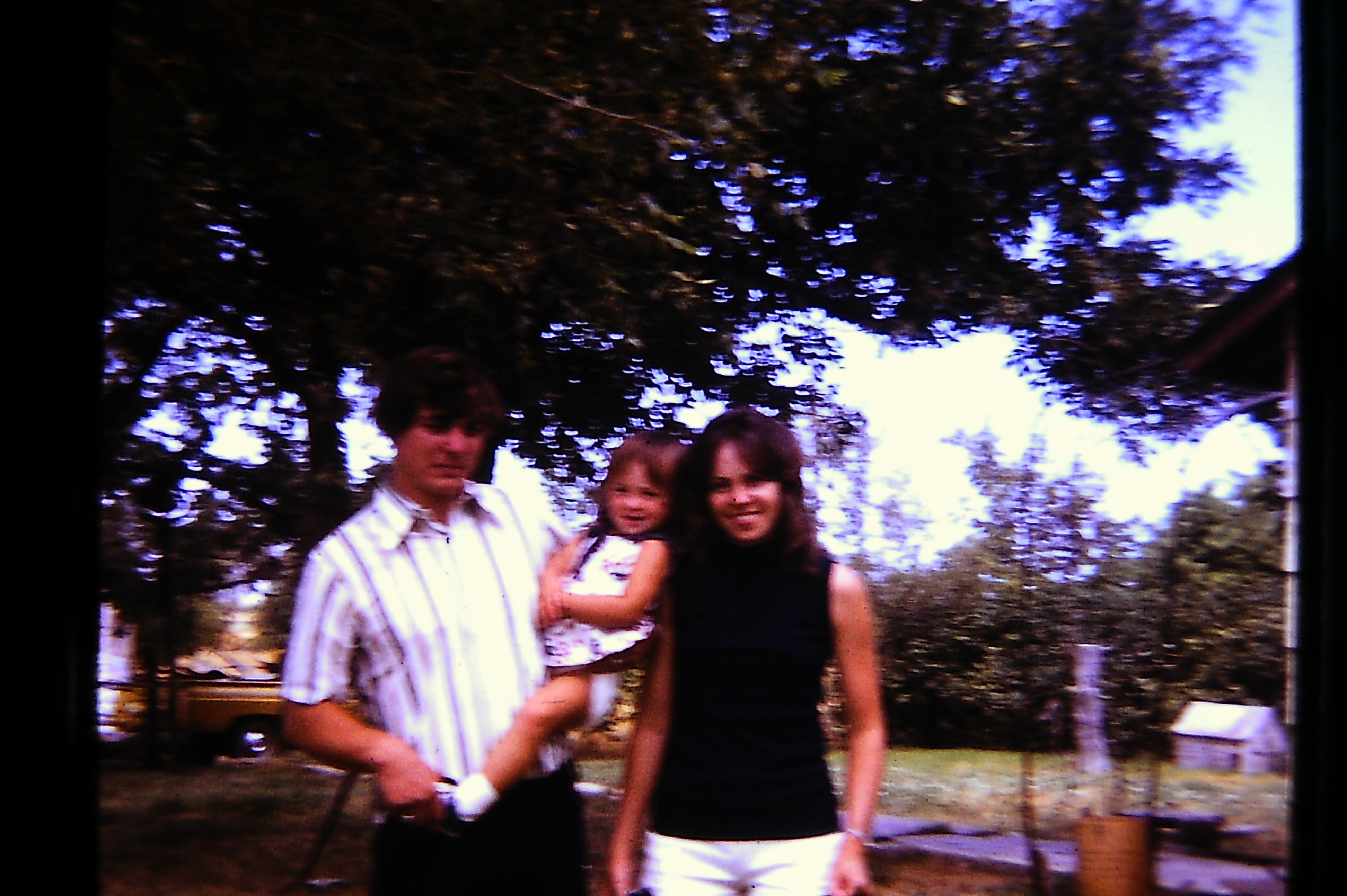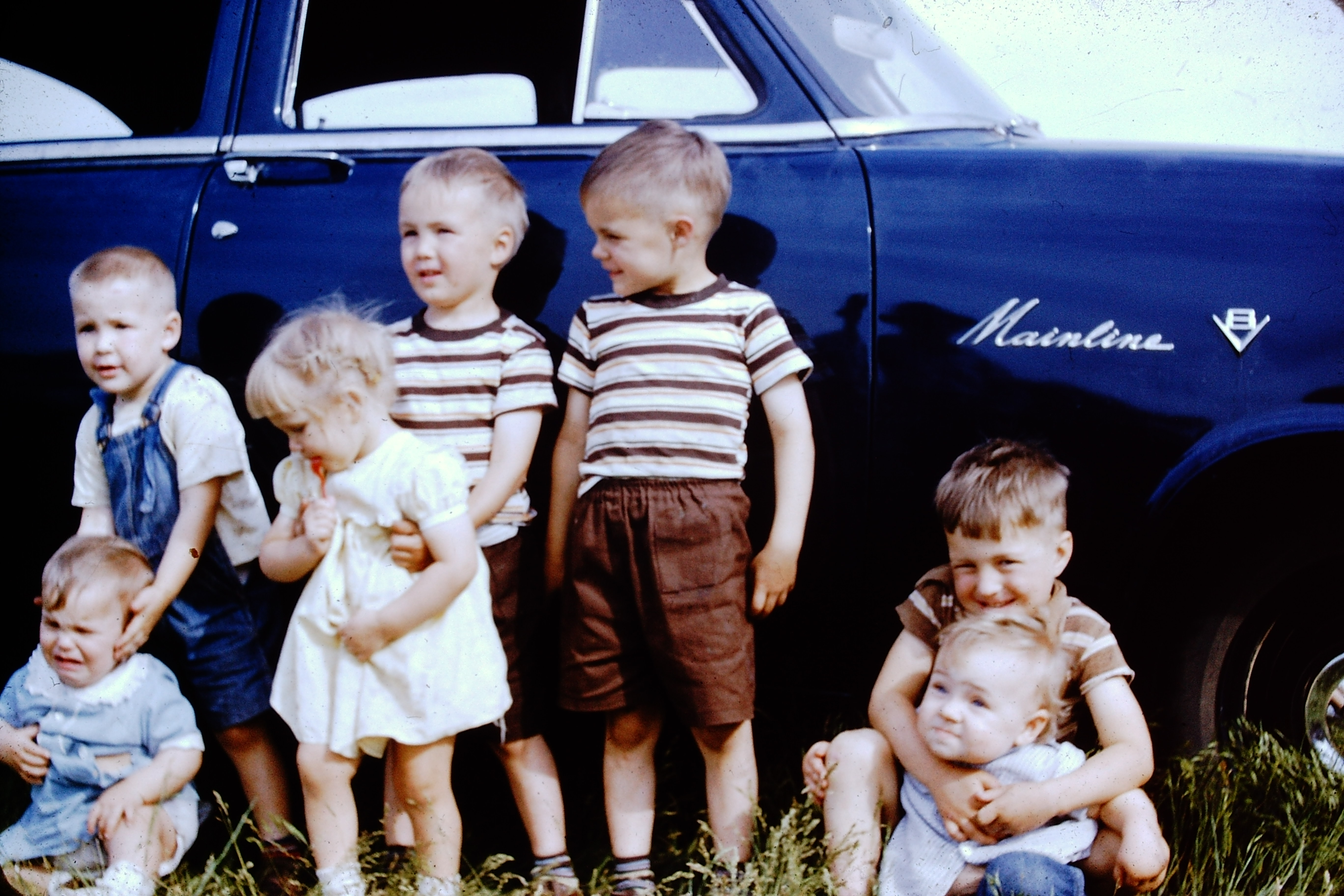 Tara Priddy Hardy, her husband Max Hardy, Clyde’s mother Isabelle, Clyde behind her, Mary in the white dress, Jerry behind her, and uncle Chuck. The kids, left to right: Kathy, Sean Priddy, and Tara’s oldest child Bobbie(?) Taken at Grandma Johnson’s farm around 1968.Clyde’s daughters Kathy and Grace, my mother. Early-mid 1970’s
