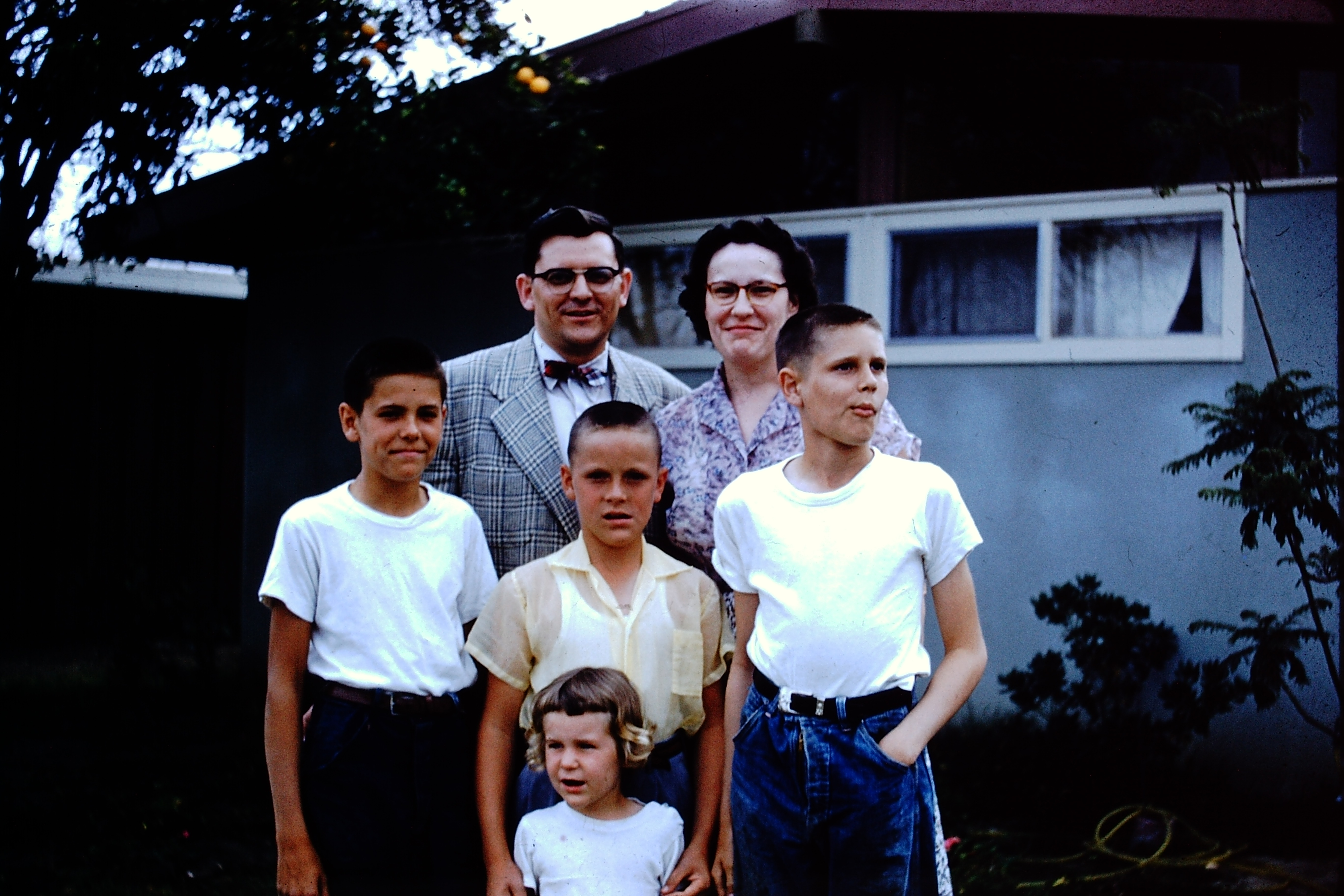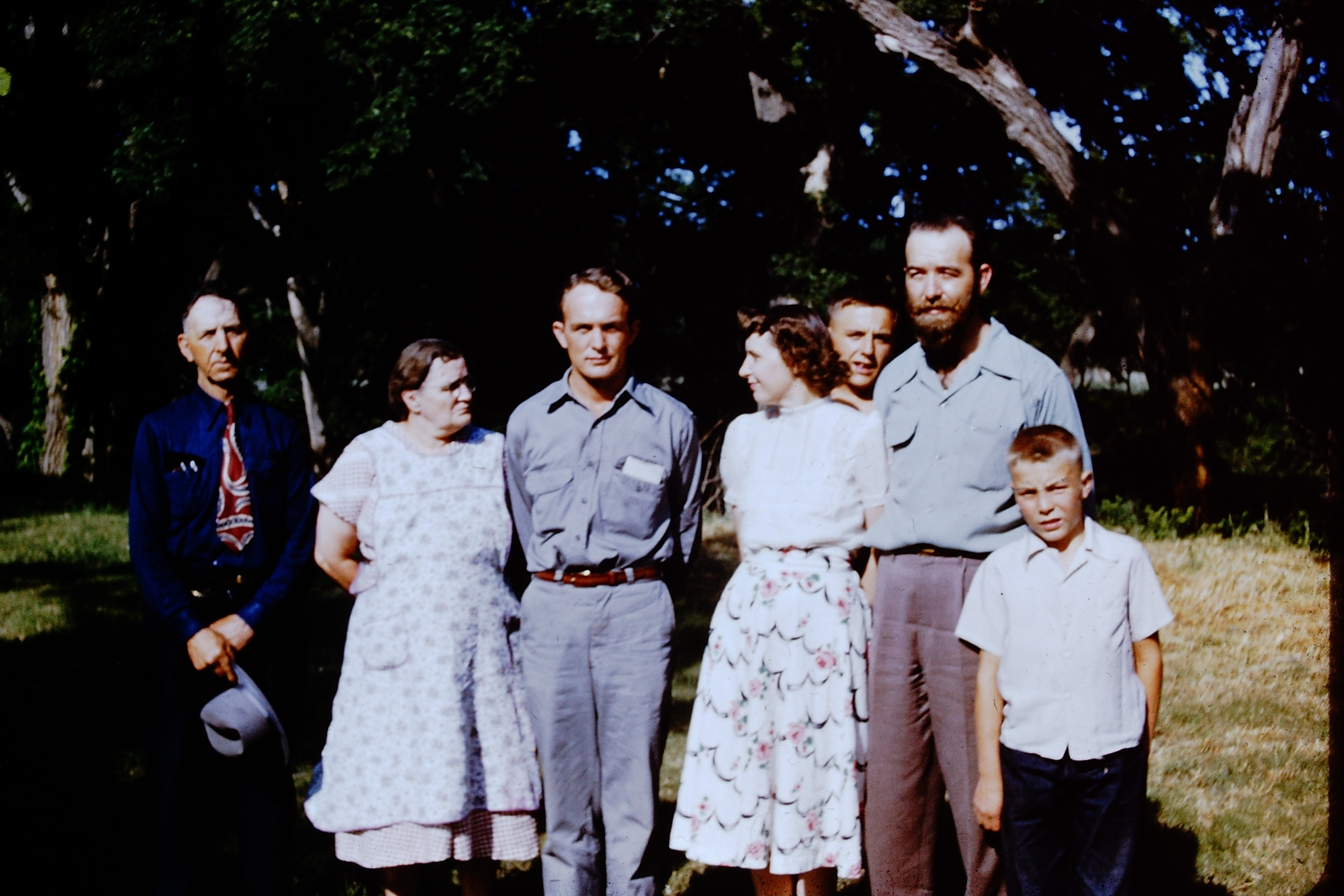 Left to right: Lee’s wife Doris, Clyde’s oldest brother, Lee (in the fedora), Letha, Jerry and Chuck